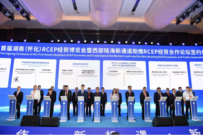 5月5日,首届湖南(怀化)RCEP经贸博览会签约仪式现场。 杨华峰摄